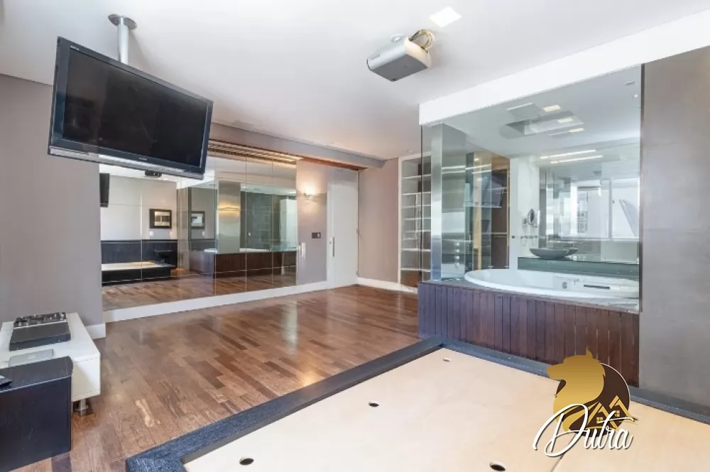 Cobertura duplex 254 m² de área útil, piso inferior com sala de estar e jantar com piso em madeira, varanda gourmet com churrasqueira, fechada com vidro, cozinha,...